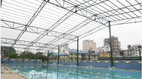 Một điểm thú vị tại bể bơi Hải Quân đó chính là bể được trang bị mái che rất tiện ích và đảm bảo nhu cầu sử dụng của mọi người dù trời mưa hay nắng. Mái che được làm bằng thép chịu lực, khung vòm cao và rộng giúp cho bể bơi thông thoáng, vừa che mưa nắng vừa giúp ngăn chặn bụi bẩn, lá cây từ khuôn viên rơi xuống bể bơi.